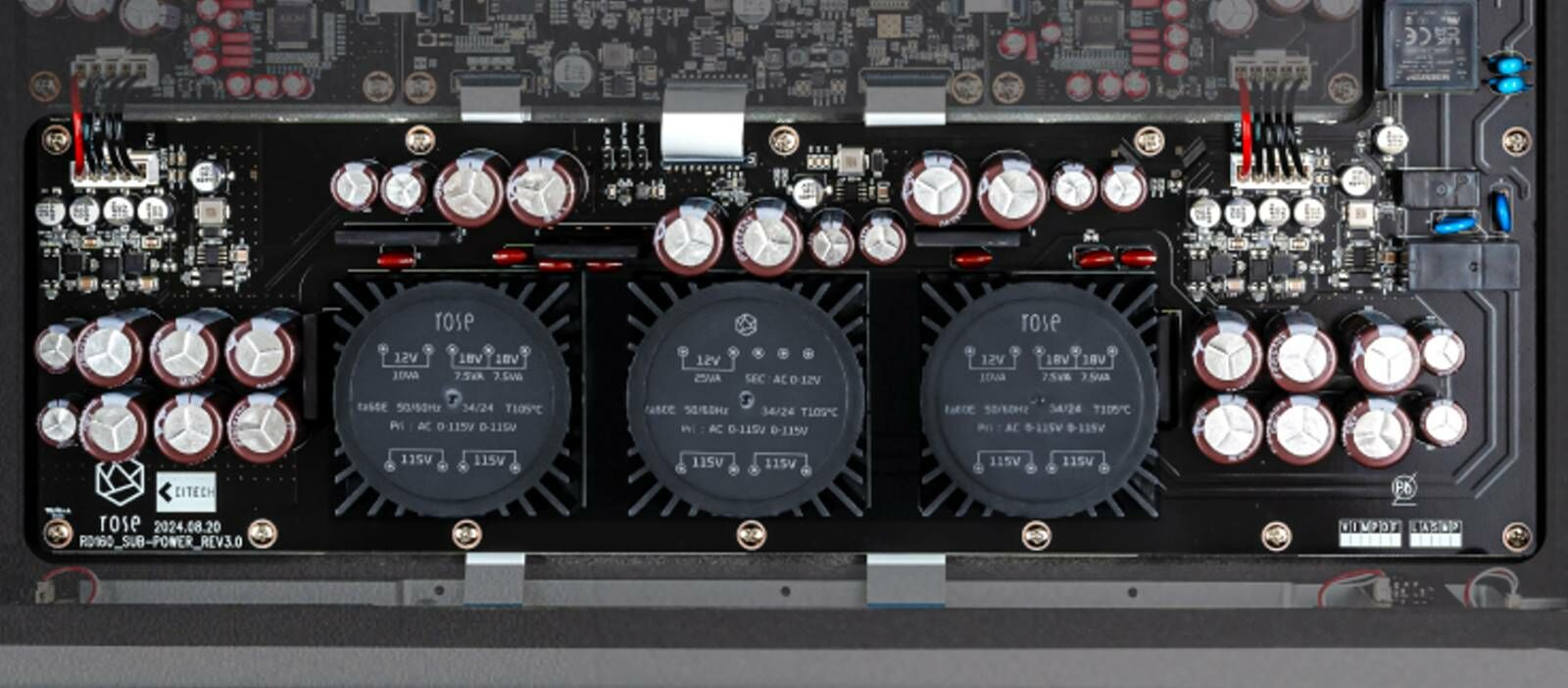 Der Hifi Rose RD160 ist ein hochpräziser digitaler Wandler und die hochwertigen Bauteile im innern des Gerätes sind auf eine präzise Spannungsversorgung angewiesen, denn nur so können die einzelnen Teilbereiche die Ansprüche an ein audiophiles Signal gewährleisten. Um diese Stabilität zu gewährleisten sind im RD160 drei Netzteile für die einzelnen Baugruppen verbaut: ein Netzteil für die digitale Eingangsstufe, eines für den DAC selber und schliesslich das Dritte für die analoge Vorstufe. Nichts wird beim RD160 dem Zufall überlassen.