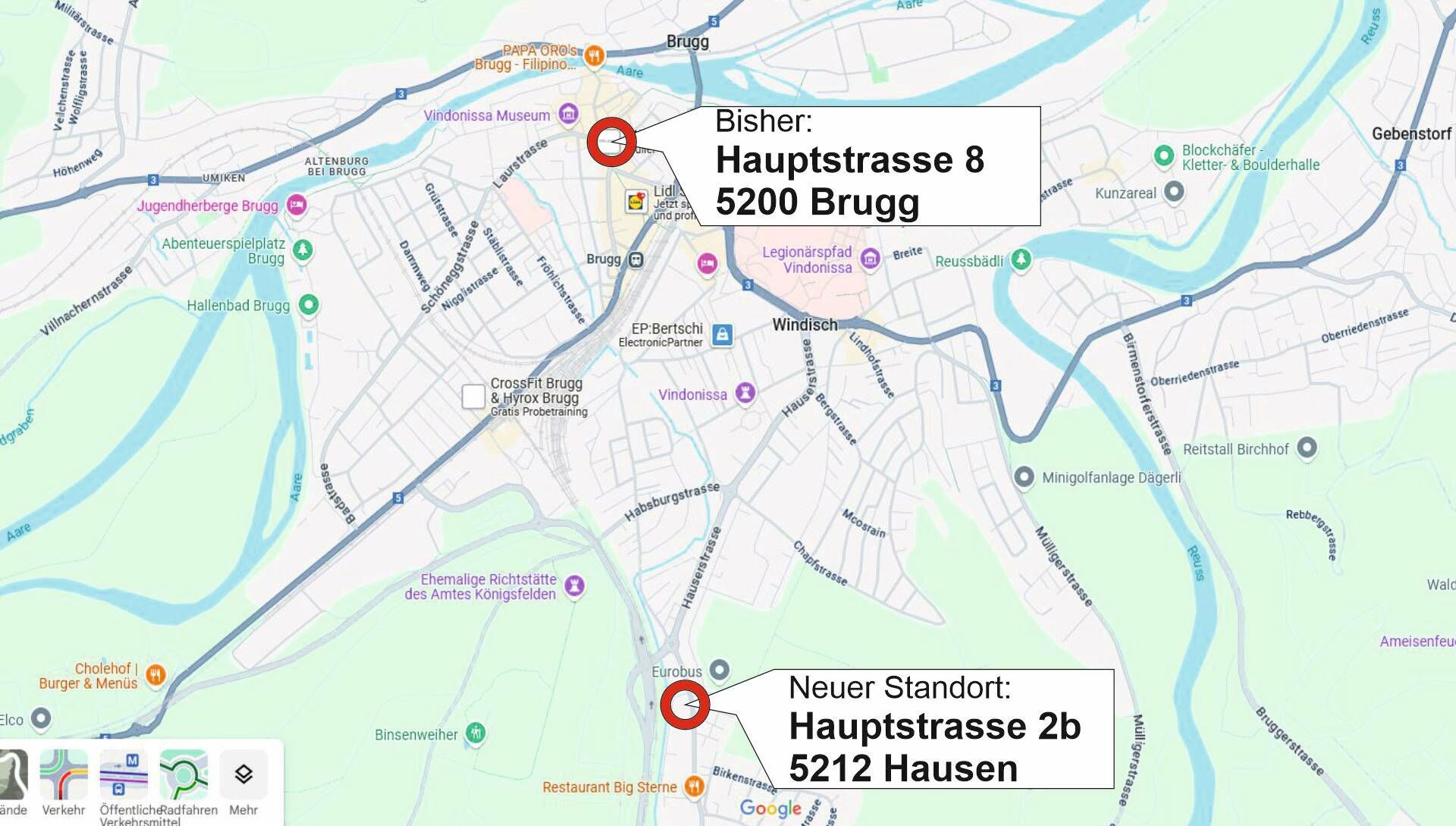 Wir wechseln unseren Standort! Seit nunmehr 42 Jahren befindet sich unser Geschäft an der Hauptstrasse 8 in Brugg. Während dieser Zeit konnten wir unser Lokal immer wieder vergrössern und den sich ändernden Bedürfnissen anpassen. Trotzdem sind wir in den letzten Jahren wieder an die Grenzen gestossen - eine Vergrösserung war im bestehenden Lokal leider nicht mehr möglich.